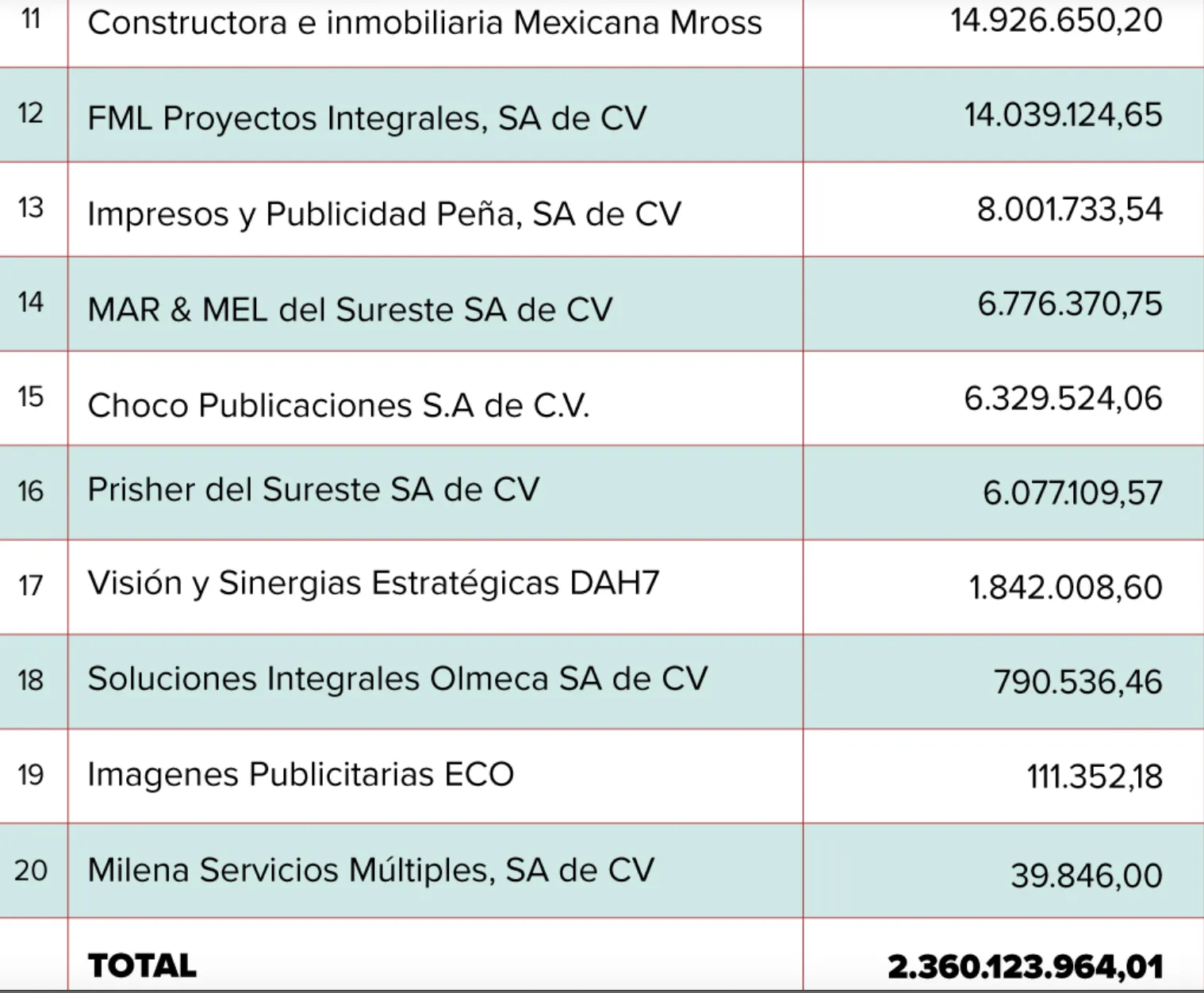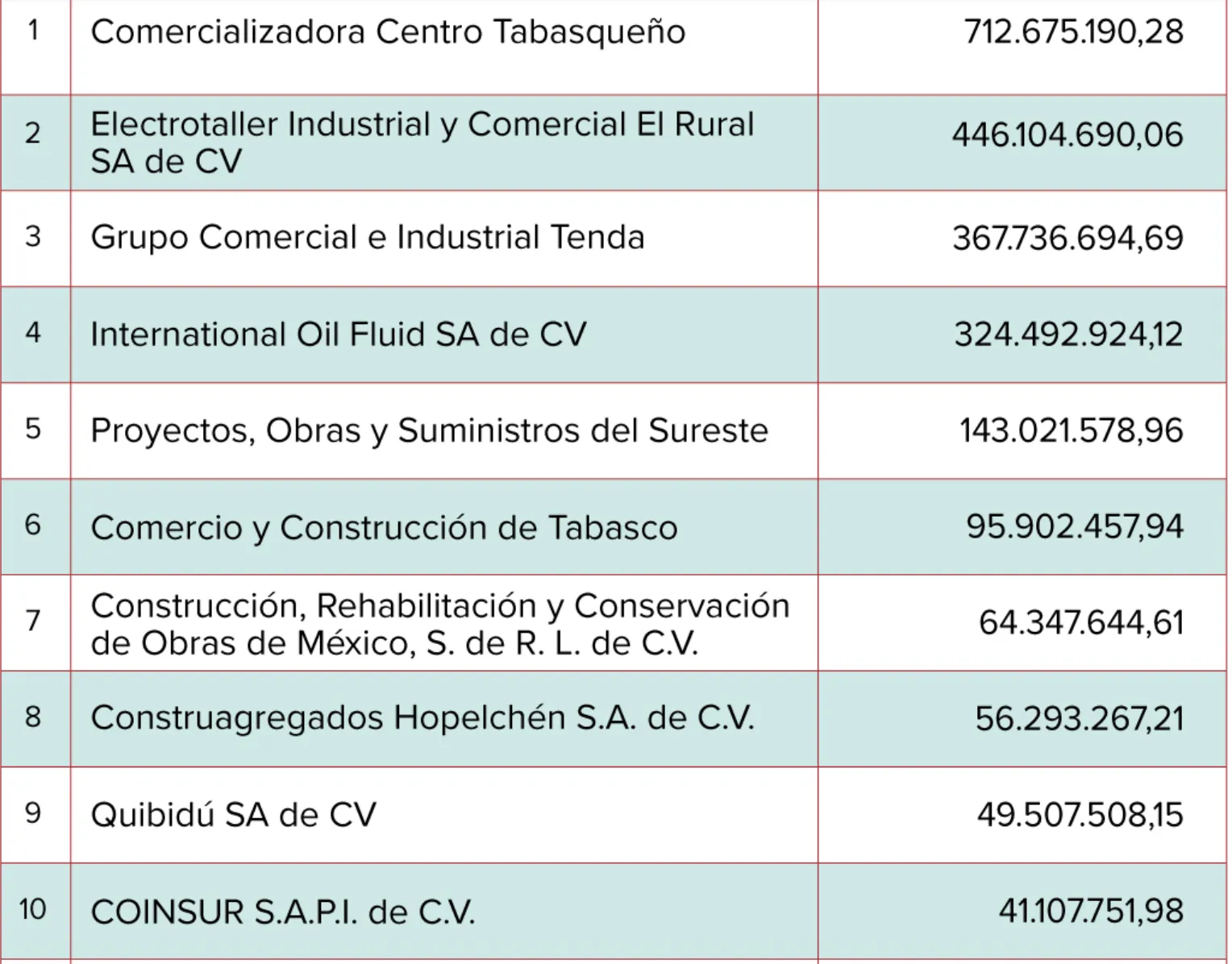 El factor común de estas empresas es que fueron, al igual que otra veintena, contratadas durante el gobierno de Adán Augusto López. y por otros gobiernos de Morena.
