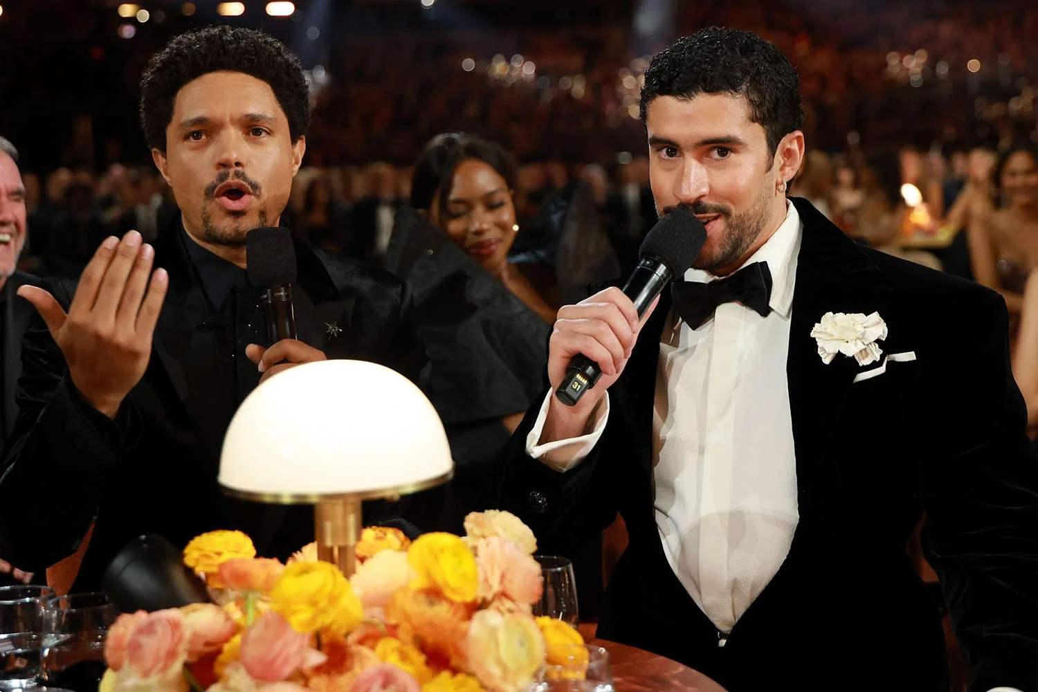 Trevor se sentó junto a Bad Bunny y explicó que el cantante tiene su residencia en Puerto Rico y lo que ha hecho para hacer que los boletos de conciertos sean asequibles para las personas de esa nación. Noah mencionó que BB va a estar en el Super Bowl y no puede actuar en los Grammy por contrato. Le dijo al cantante que si las cosas siguen empeorando en Estados Unidos "¿puedo irme a vivir a Puerto Rico contigo?", a lo que el Conejo Malo contestó "te tengo malas noticias, Puerto Rico es parte de EU",  -no les digas, no les digas-, bromeó Trevor.