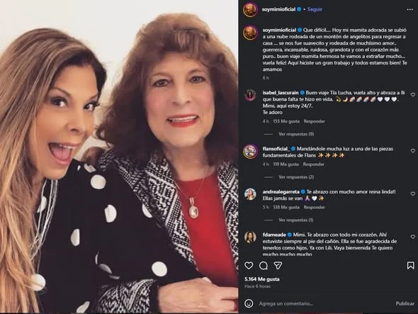 “Qué difícil… Hoy mi mamita adorada se subió a una nube rodeada de un montón de angelitos para regresar a casa… se nos fue suavecito y rodeada de muchísimo amor... guerrera, incansable, ruidosa, grandota y con el corazón más puro. Buen viaje, mamita hermosa. Te vamos a extrañar mucho… vuela feliz! Aquí hiciste un gran trabajo y todos estamos bien! Te amamos”.