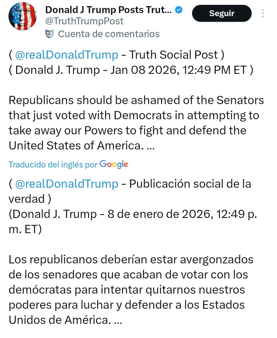 "Los republicanos deberían estar avergonzados", disparó Trump en su red Truth Social reafirmando su postura de que el control parlamentario obstaculiza la seguridad de los Estados Unidos.