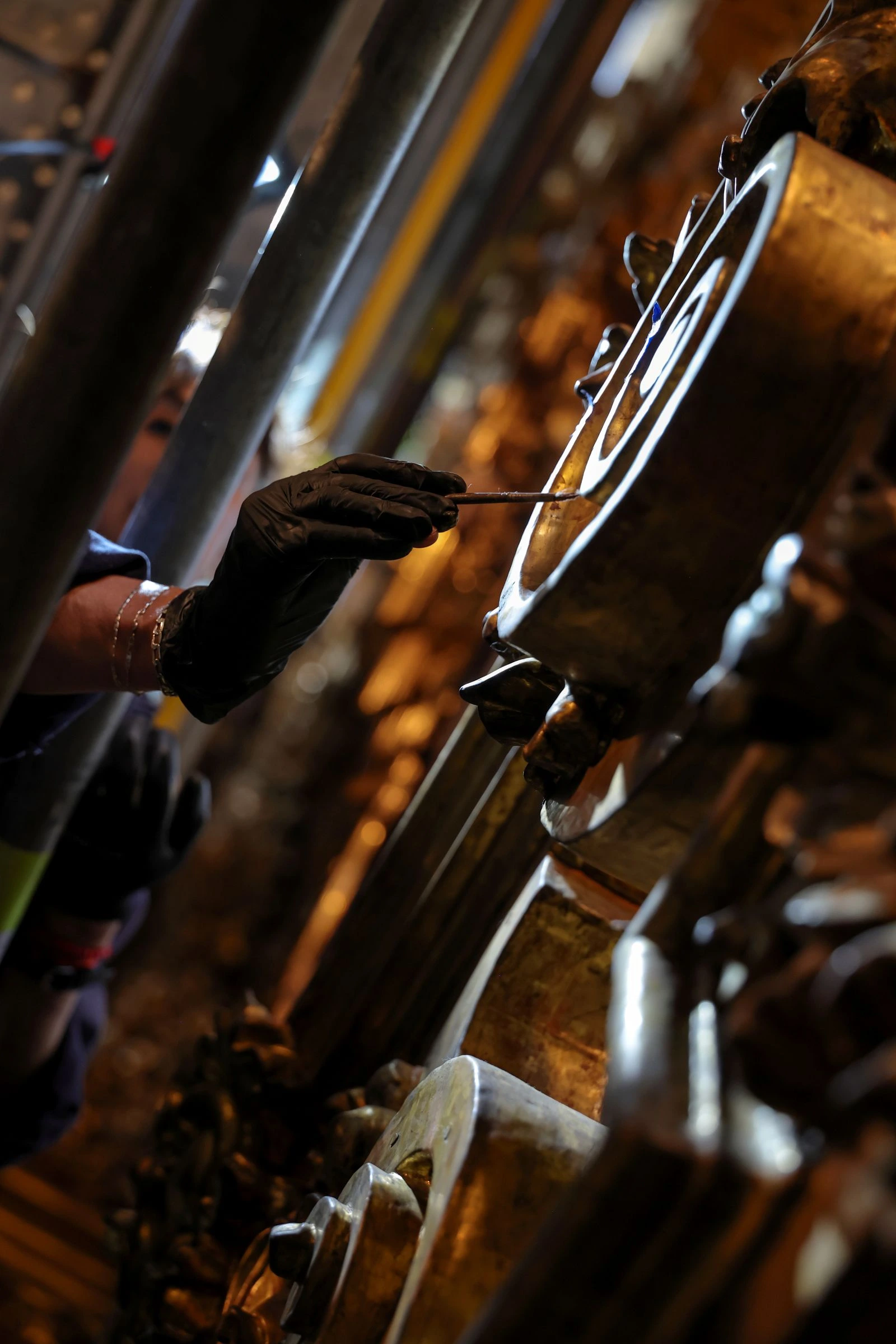 Debido a sus dimensiones monumentales —25 metros de alto—, fue necesario instalar un andamio de once niveles. También se realizó un escaneo completo para generar un registro tridimensional.