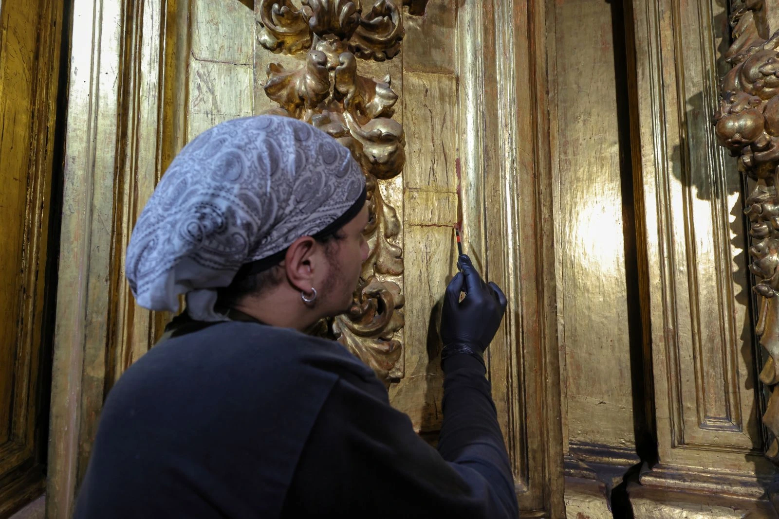 La intervención, realizada del 11 de febrero al 13 de marzo de 2026, fue supervisada por el restaurador Salvador Guillén Jiménez y encabezada por Lucía de la Parra de la Lama, con la participación de Rosario Guerra Olvera. El retablo presentaba acumulación de polvo, hollín y desprendimientos en el dorado, además de huellas antiguas de insectos xilófagos.