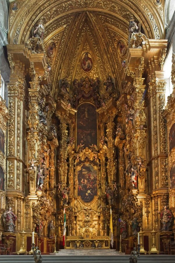 Considerado el retablo más espectacular de México, fue concebido como capilla privada de los reyes de España en la época virreinal. Su autor fue Jerónimo de Balbás, quien inició la obra en 1718, la concluyó en 1725 y fue dorada con hoja de oro de 22 kilates hasta 1735, para ser inaugurada en 1737.