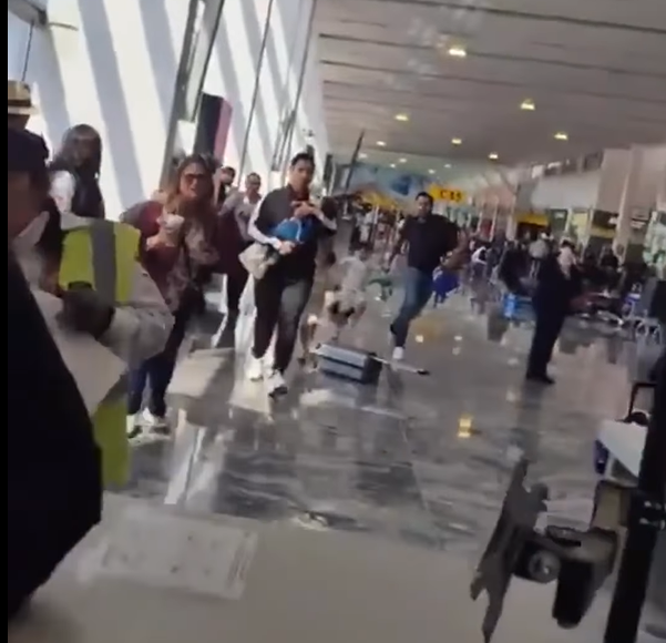 En redes sociales circularon videos de pasajeros corriendo dentro del Aeropuerto de Jalisco, buscando refugio ante presuntos ataques del crimen organizado contra la terminal aérea.
