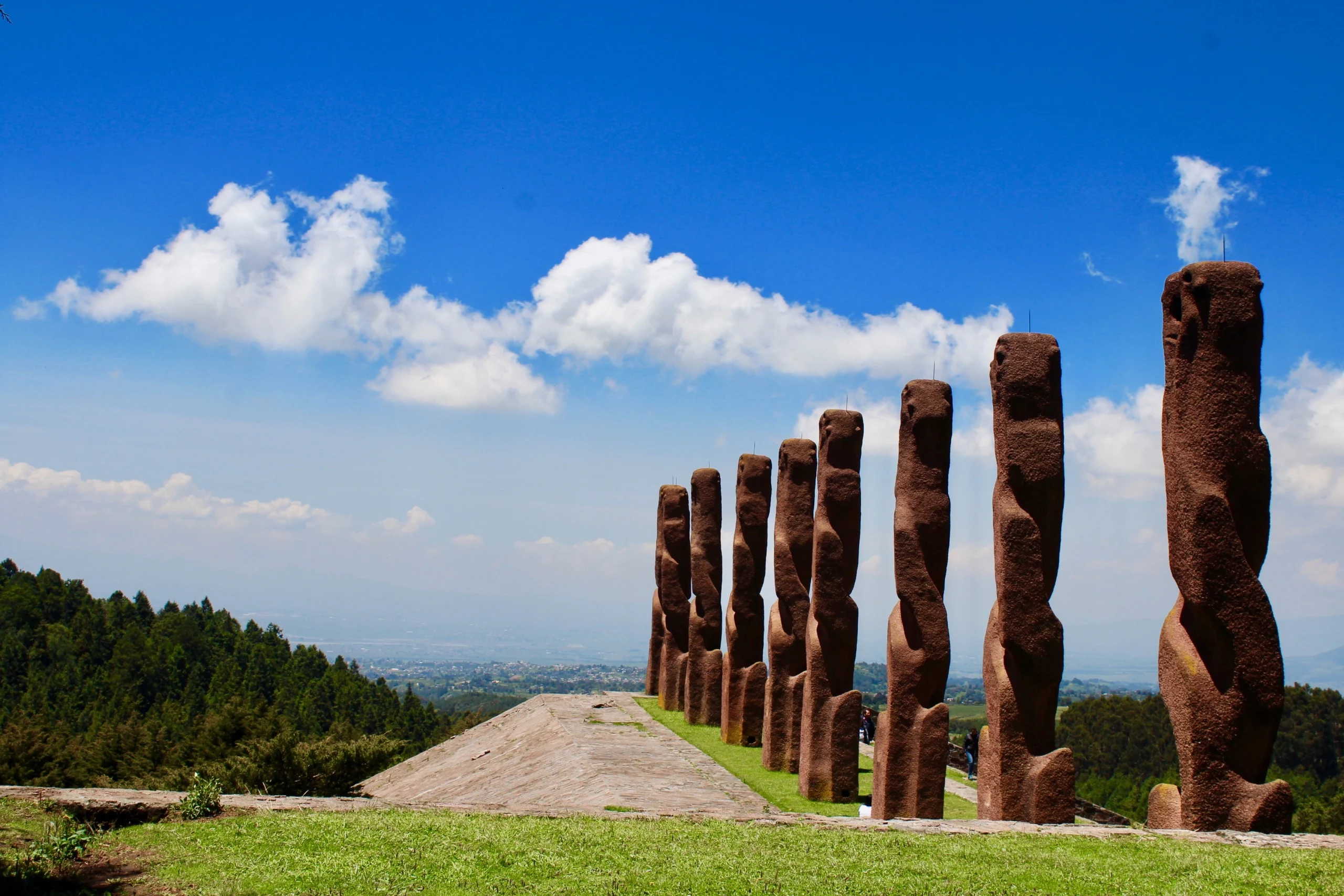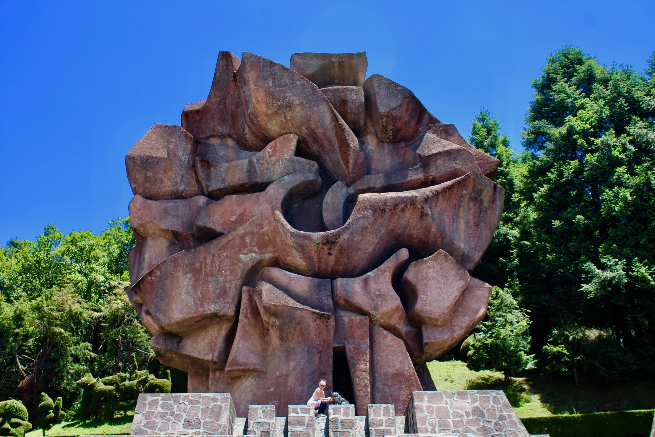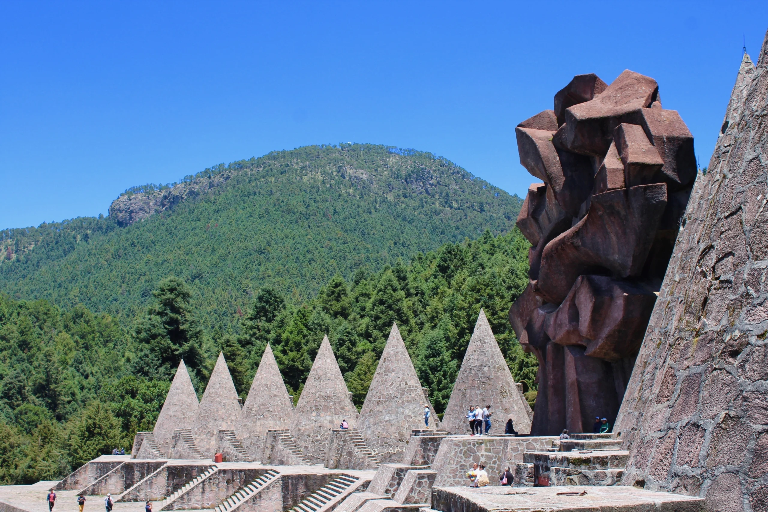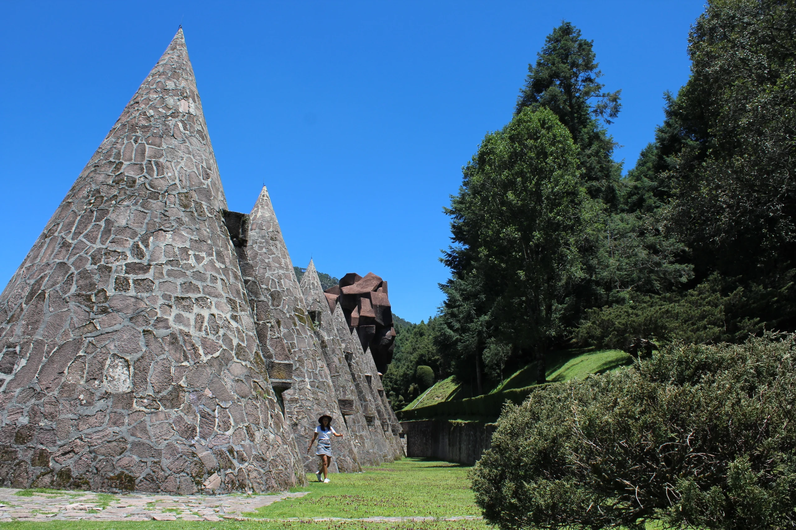Todo en este lugar está impregnado de simbología prehispánica. Cada estructura, cada trazo arquitectónico, cada espacio abierto parece contar una historia antigua que sigue latiendo. Pero hay algo que impacta desde el primer instante: las 45 esculturas gigantes e imponentes, firmes, casi vigilantes, se alzan como guardianes de este recinto sagrado, recordándonos que estamos entrando a un espacio que merece respeto, contemplación y pausa.