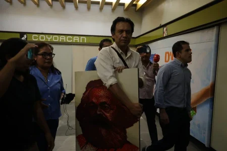 Al salir el lugar portaba una mochila y un retrato del filósofo Karl Marx. A su paso, trabajadores de la SEP le manifestaron su respaldo