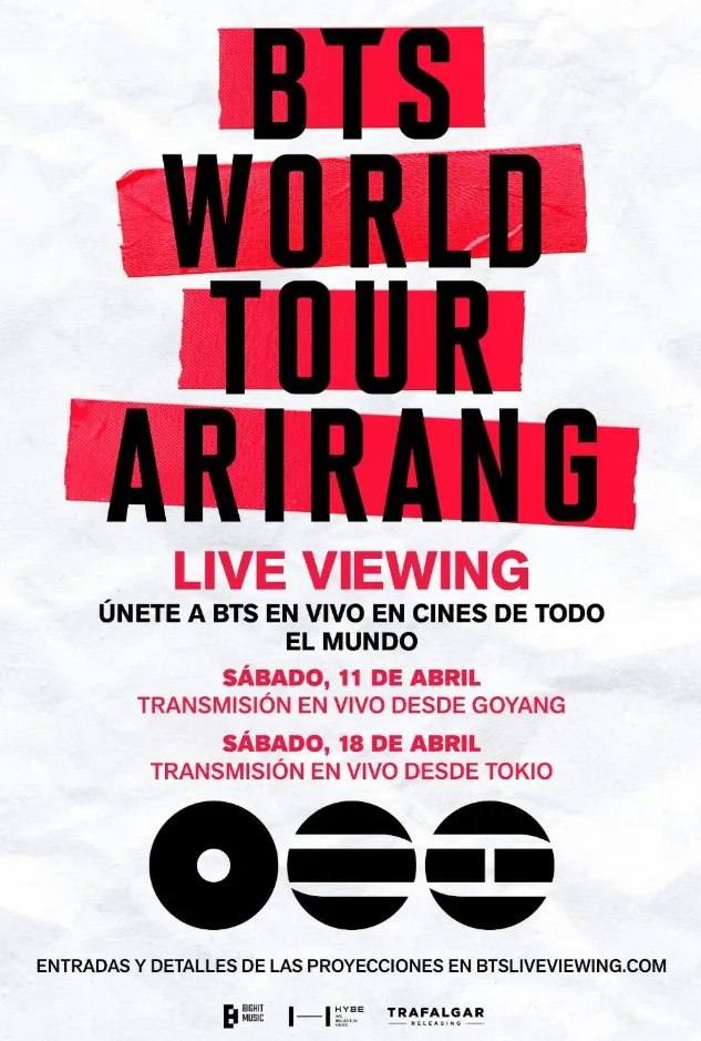 Después de casi cuatro años sin una gira global de gran escala, BTS regresa a los escenarios internacionales con el BTS WORLD TOUR ‘ARIRANG’, en colaboración con Trafalgar Releasing. En México, Cinépolis +QUE CINE transmitirá en vivo los conciertos inaugurales desde Goyang, Corea del Sur, el 11 de abril, y Tokio, Japón, el 18 de abril de 2026. La preventa ya se encuentra disponible desde este miércoles.